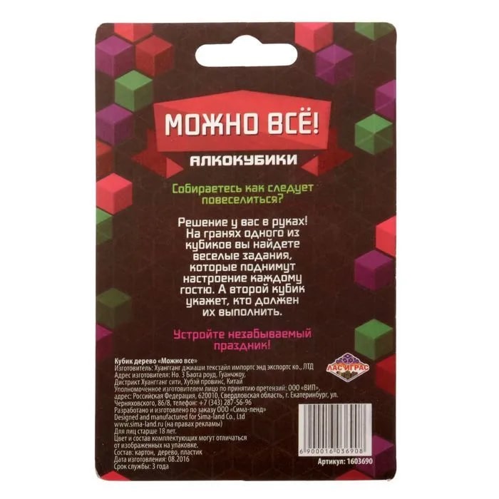 Купить кубик "можно все", алкокубики для принятия решений от 60 руб. с доставкой до пункта выдачи в Суворове. Интернет магазин ДекаМаркет. Оплата при получении.